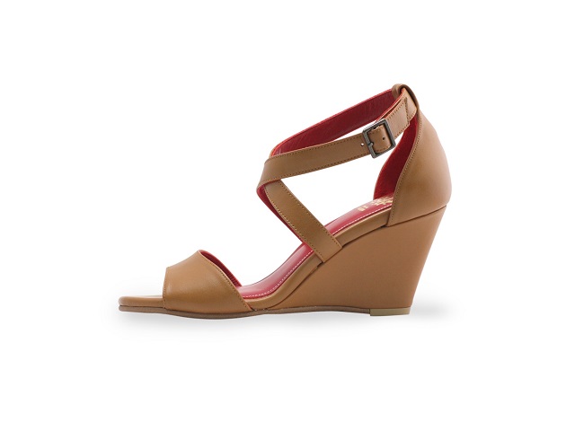 太めのストラップが甲から足首にかけて交差するデザインは、安定感はもちろん足を細く見せる効果も!