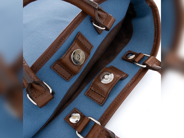 持ち手を内側に折り、本体を二つに畳むとあっという間にクラッチバッグ仕様になり、
