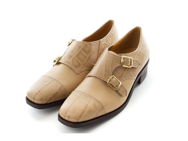 今回ご紹介させて頂く靴は脱ぎ履きが楽なレディ-スダブルモンクシューズになります。内サイドにゴムを設ける事によって脱ぎ履きがしやすくなっています。見た目にもこだわっていてピッチドヒールと言って接地面に向かって細くなっている為、足元をエレガントに演出してくれます。スタイリッシュなデザインでスーツスタイルからカジュアルまで幅広く使えるダブルモンクは一足あると重宝しますので、オススメですよ~。